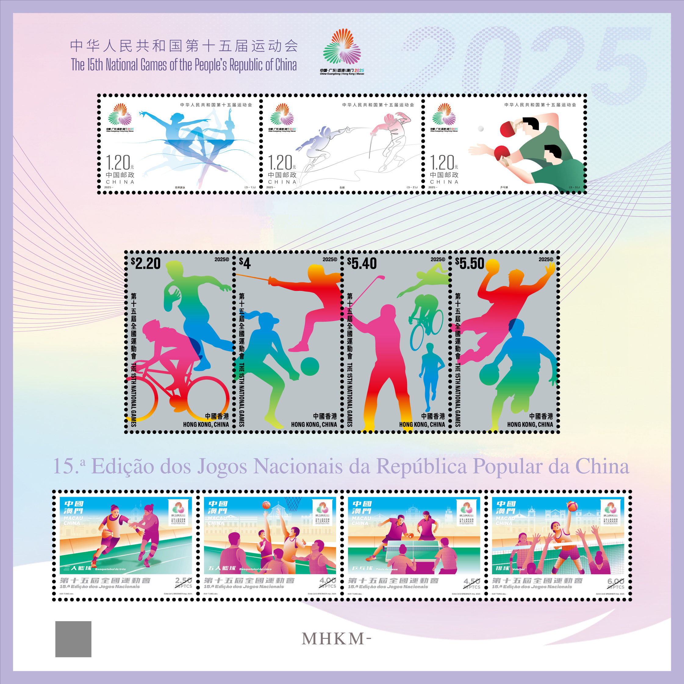 中华人民共和国第十五届运动会是粤港澳三地承办的我国规模最大、水平最高、影响最广的综合性运动会小麦策略,也是香港、澳门首次承办全国运动会。为纪念此项体育盛会,中国邮政作为国家授权的邮票发行机构,在2025年11月9日正式发行《中华人民共和国第十五届运动会》纪念邮票一套3枚,并首次同步发行涵盖内地、香港、澳门三地邮票元素的《中华人民共和国第十五届运动会》三地小全张1枚。
