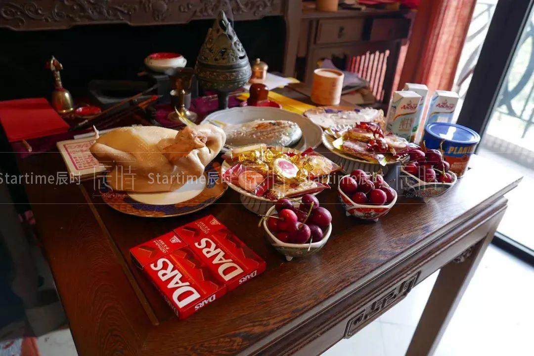 瓜果,若按照台氵弯习俗则选用五个红苹果(平掉恶果)、一个凤梨(发貝才)、一个柚子或哈密瓜、一串葡萄。