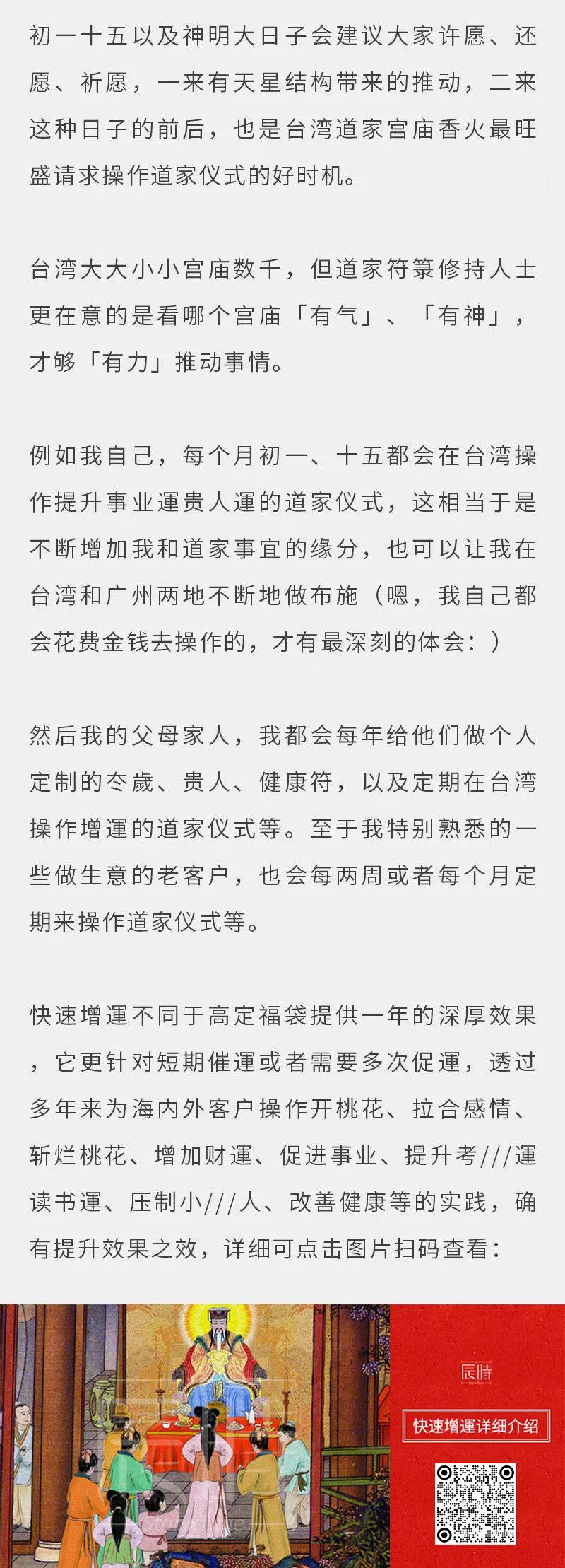 虽然我会在神明的吉祥日子当天提醒大家祈愿(这是我作为台灣地区閭山派噵家弟子的一个䖍诚推荐),然后细细地告诉大家这位神明的来历,以及为何要在这段时间里祈愿,祈愿可以如何做等。