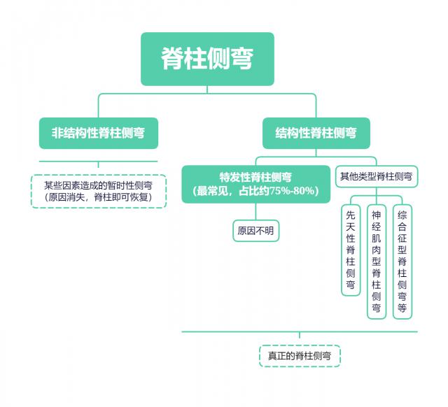 脊柱侧弯主要分为非结构性脊柱侧弯和结构性脊柱侧弯。