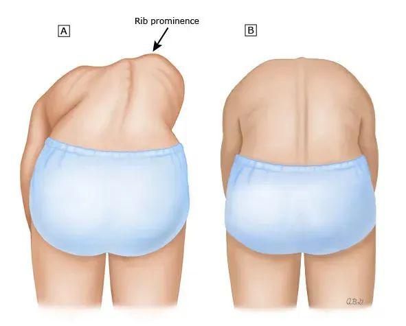 图 A 胸椎侧弯的右侧肋骨驼峰。