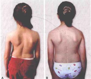 这时从背面看脊柱,就会明显发现脊柱不再是一条垂直线了。